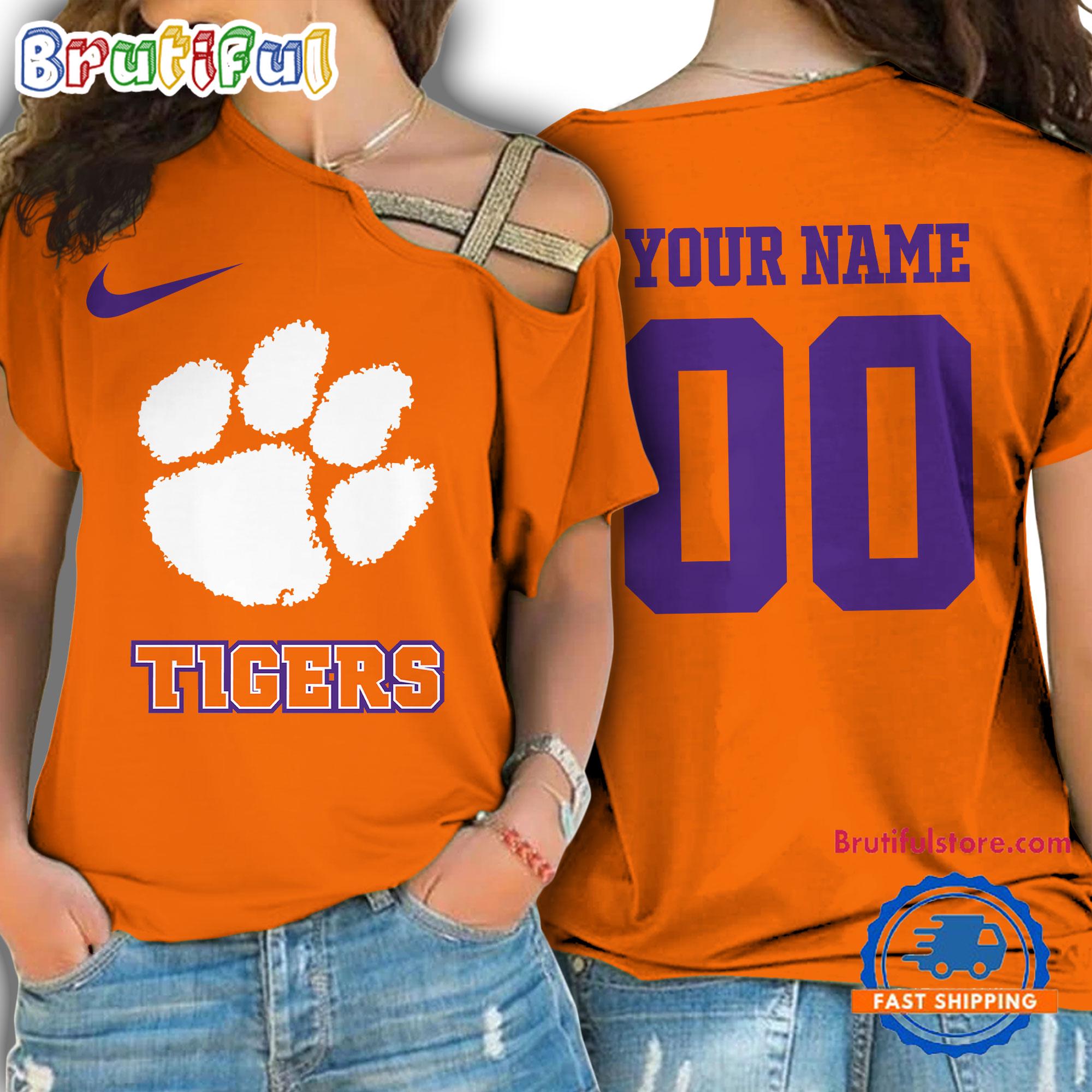 NCAA Clemson Tigers Custom Name Number One Shoulder T-Shirt