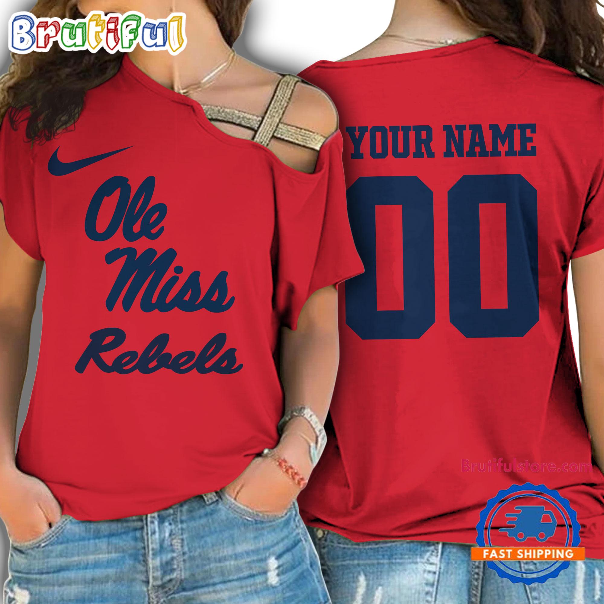 NCAA Ole Miss Rebels Custom Name Number One Shoulder T-Shirt